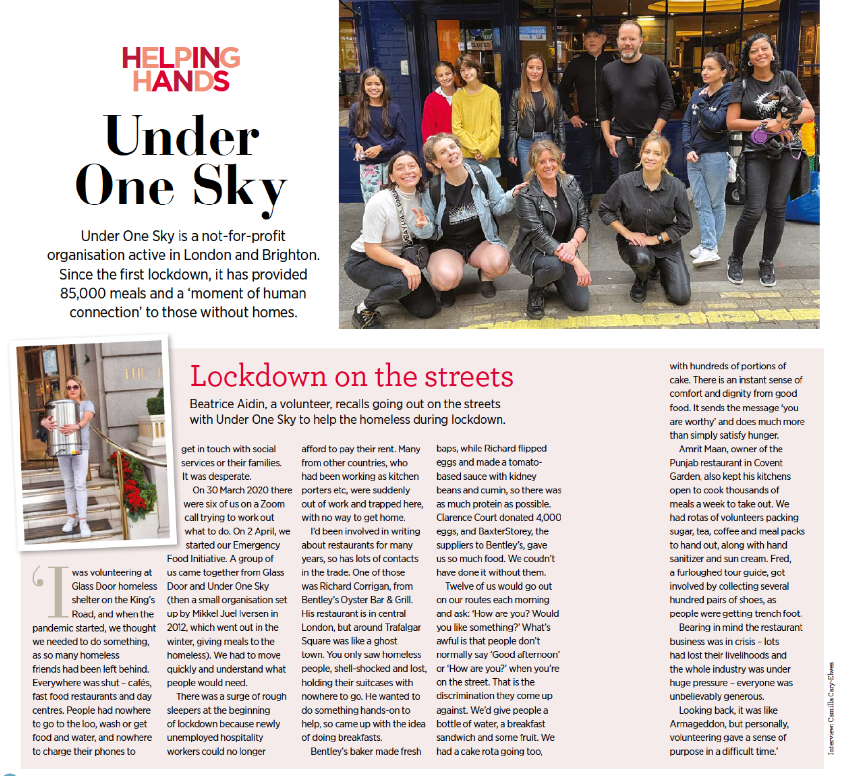 Lockdown on the streets. Beatrice Aidin, a volunteer, recalls going out on the streets with Under One Sky to help the homeless during lockdown.